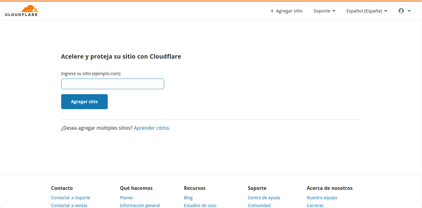 Ahora, verás el listado de dominios de la cuenta y la opción para agregarlo a CloudFlare.